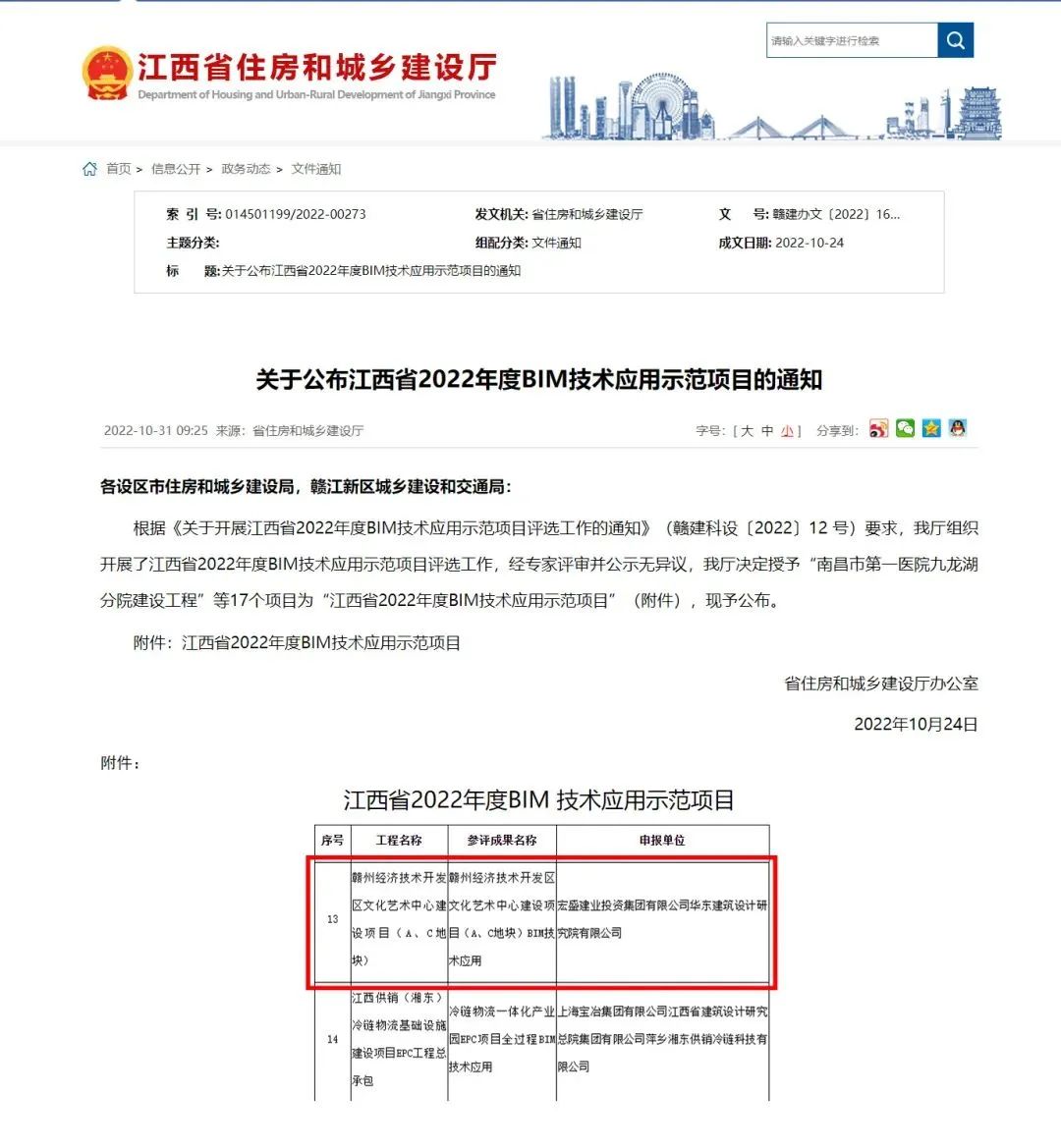 宏盛建業(yè)投資集團(tuán)有限公司贛州經(jīng)濟(jì)技術(shù)開發(fā)區(qū)文化藝術(shù)中心建設(shè)項(xiàng)目(A、C地塊)榮獲江西省2022年度BIM技術(shù)應(yīng)用示范項(xiàng)目。