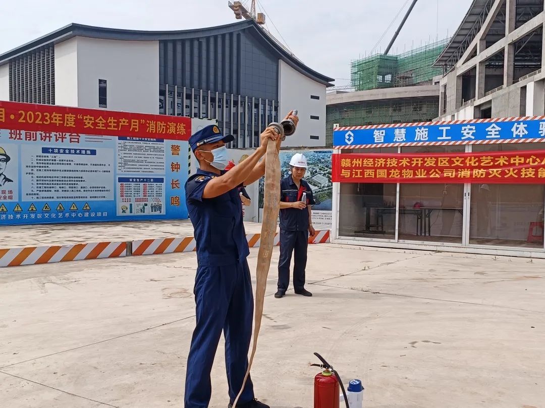2023年6月11日上午9點(diǎn),贛州經(jīng)開區(qū)文化藝術(shù)中心項(xiàng)目部與江西國(guó)龍物業(yè)公司在項(xiàng)目部現(xiàn)場(chǎng)聯(lián)合開展消防演練。項(xiàng)目部負(fù)責(zé)人葉興武、全體項(xiàng)目管理人員及各班組成員一起參于本次消防演練。此次消防演練特別邀請(qǐng)了贛州應(yīng)急救援隊(duì)中隊(duì)長(zhǎng)俞加寶進(jìn)行全程指導(dǎo)講解。