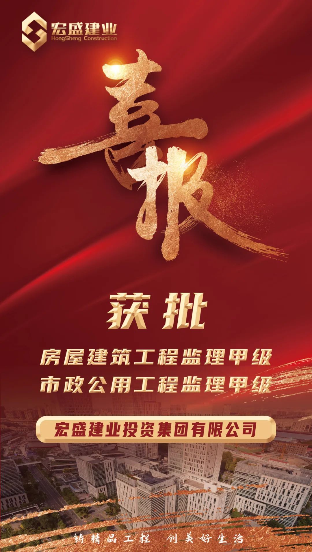 喜訊|宏盛建業(yè)獲批房屋建筑工程、市政公用工程監(jiān)理甲級(jí)資質(zhì)