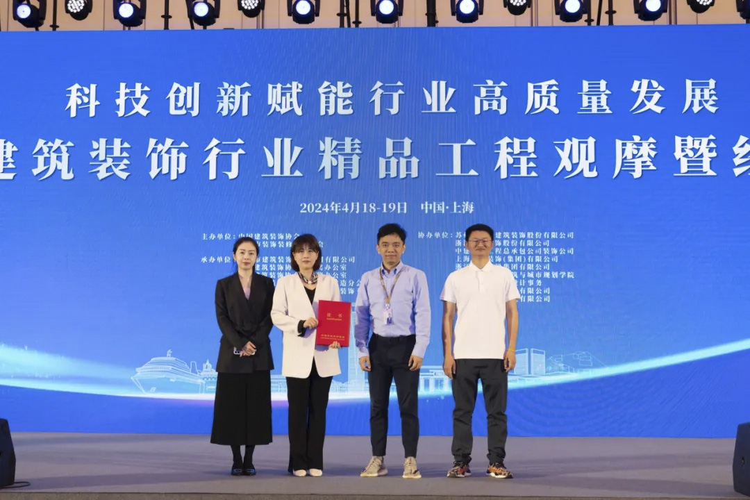 2024年4月18日至19日,中國建筑裝飾協(xié)會“2024年建筑裝飾行業(yè)精品工程觀摩暨經(jīng)驗(yàn)交流會”在上海召開。本次會議主要以展望建筑裝飾前沿技術(shù),總結(jié)推廣行業(yè)優(yōu)質(zhì)工程創(chuàng)建的先進(jìn)經(jīng)驗(yàn)做法為主要內(nèi)容,圍繞“科技創(chuàng)新賦能行業(yè)高質(zhì)量發(fā)展”為會議主題,各演講嘉賓對創(chuàng)精品工程過程的策劃與管理進(jìn)行了精彩的演講,獲得了與會人員的高度認(rèn)可。宏盛建業(yè)受邀參加此次會議,并就行業(yè)科技創(chuàng)新方面作成果展出。
