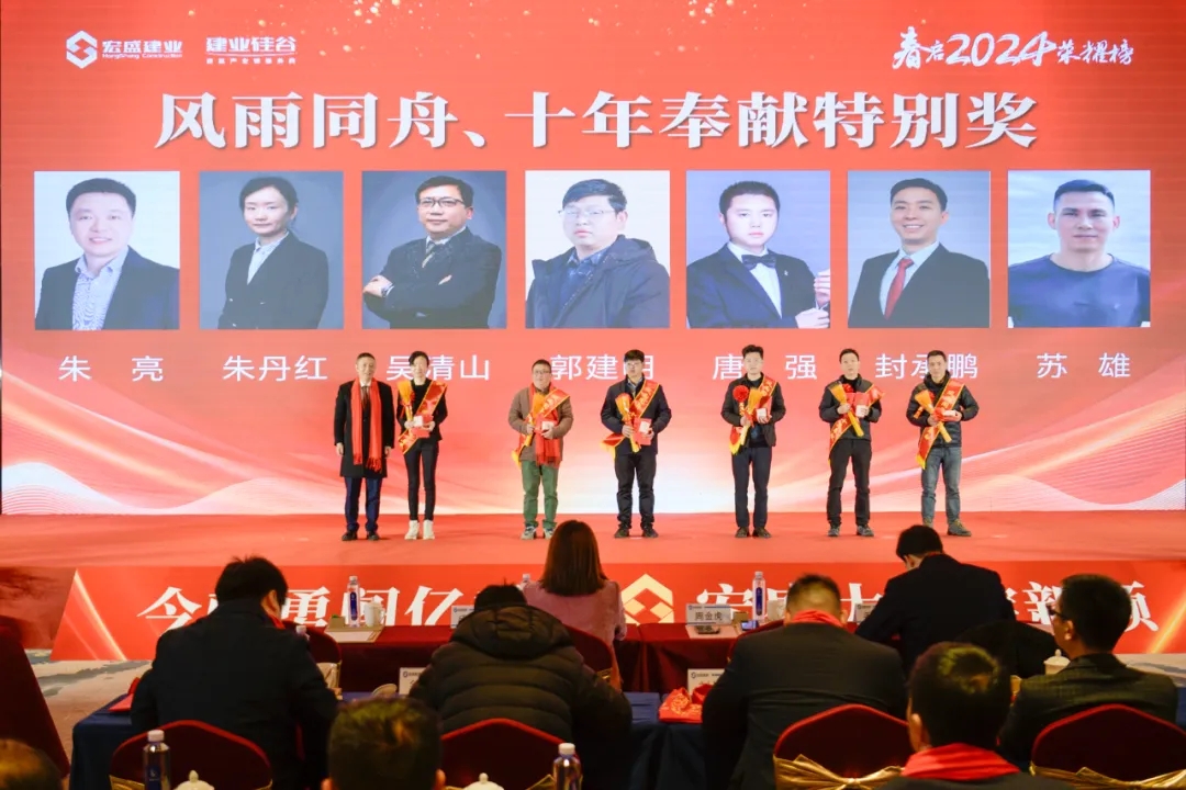 其中,“風(fēng)雨同舟·十年奉獻特別貢獻獎”尤為令人動容,朱亮、朱丹紅、吳清山等多位員工因十年如一日的堅守與奉獻,成為集團最寶貴的財富。他們的故事激勵著每一位宏盛人,以更堅定的信念投入到未來的奮斗中。