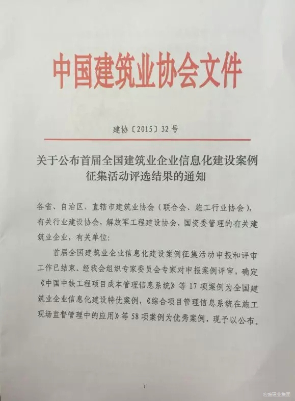 集團(tuán)信息化被中建協(xié)評(píng)為特優(yōu)案例