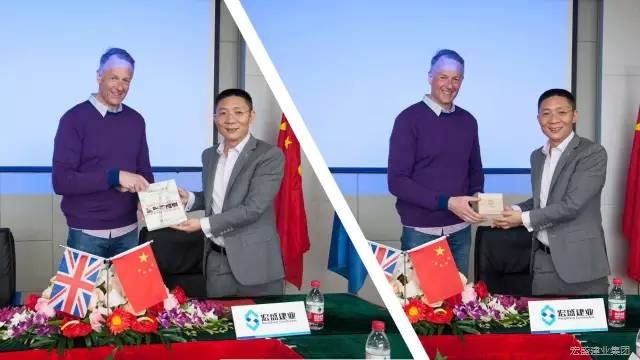 集團公司董事長周金虎與英國諾丁漢大學(xué)建筑環(huán)境學(xué)院院長蒂姆·希思教授互贈禮物