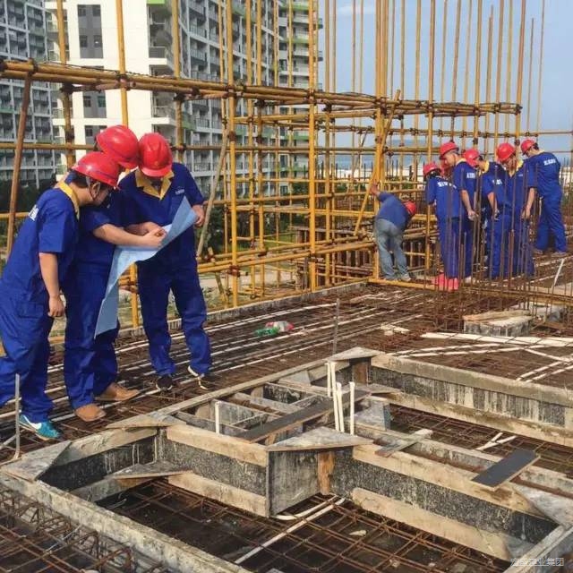 在施工現(xiàn)場導(dǎo)師帶領(lǐng)學(xué)員識(shí)圖紙