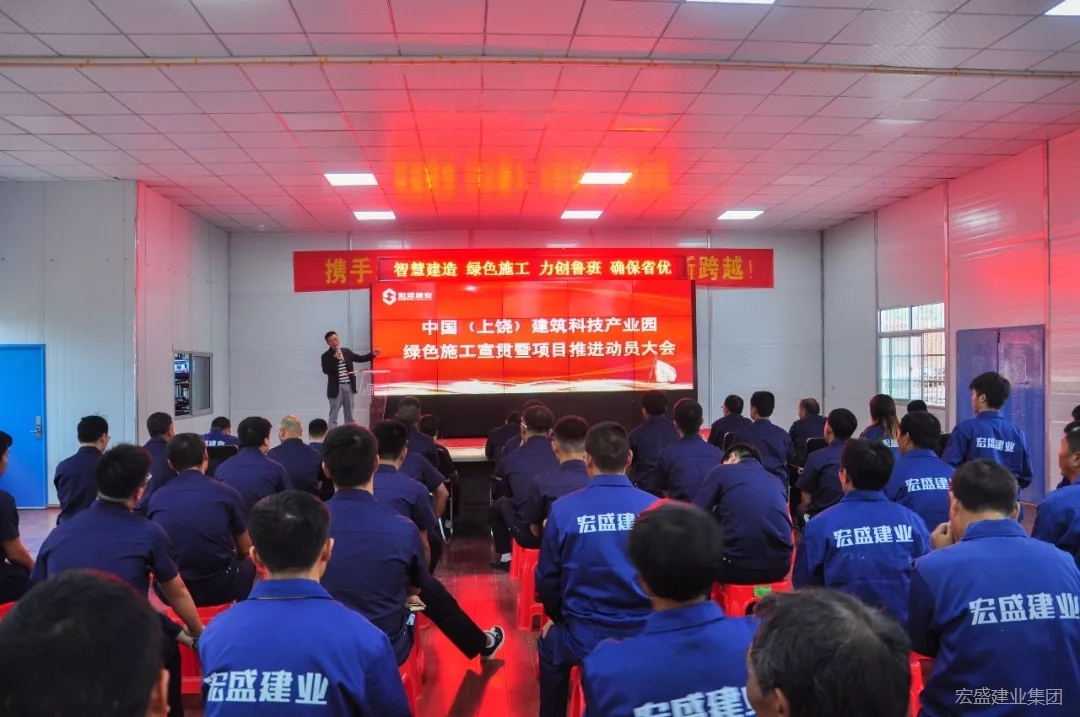 5月31日,中國(上饒)建筑科技產(chǎn)業(yè)園舉行綠色施工宣貫暨項目推進動員大會,全體管理和施工人員集結(jié)宣誓:“智慧建造,綠色施工;力創(chuàng)魯班,確保省優(yōu)”。