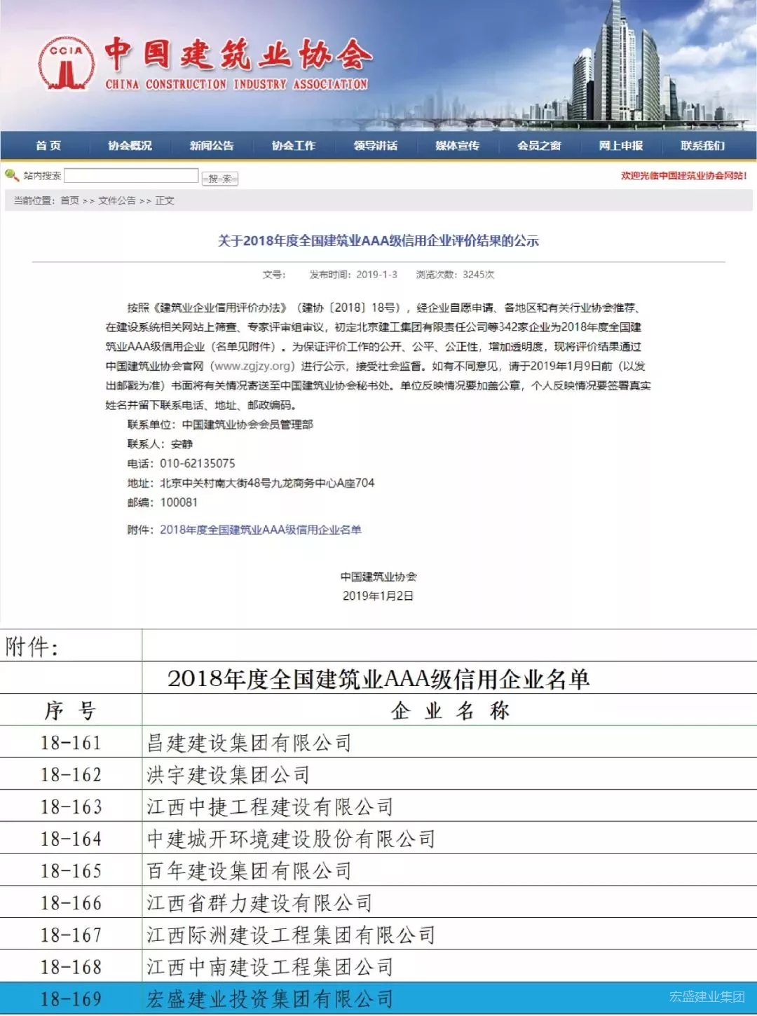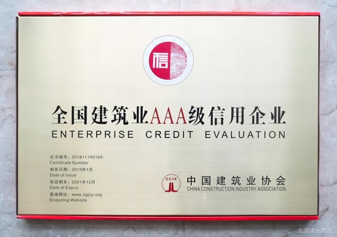 “2018年度全國建筑業(yè)AAA級(jí)信用企業(yè)”出爐 宏盛建業(yè)上榜