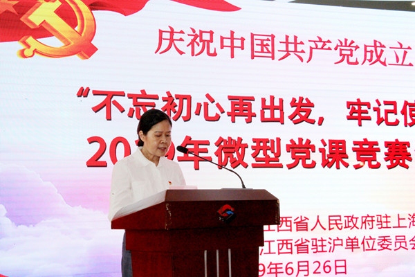 江西省政府駐上海辦事處副主任、江西駐滬單位黨委書記張雪萍主持了下午“不忘初心再出發(fā) 牢記使命開新局”主題微黨課競(jìng)賽活動(dòng)決賽。黨委下屬15個(gè)支部代表參加講課比賽。在各支部課賽同志情深如炙的演說聲中,大賽評(píng)出了決賽的一、二、三等獎(jiǎng)和優(yōu)秀獎(jiǎng)。