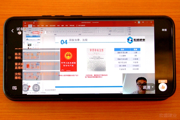 直播中,“安全講師”結(jié)合精心準(zhǔn)備的授課課件,從安全是什么,安全生產(chǎn)監(jiān)督管理機(jī)構(gòu)設(shè)置,安全管理要素,安全生產(chǎn)中的具體管理工作等方面做詳細(xì)講解。強(qiáng)調(diào)大家要牢固樹立“管生產(chǎn)必須管安全、管業(yè)務(wù)必須管安全”的安全理念,在實(shí)際工作中加強(qiáng)安全監(jiān)管。
