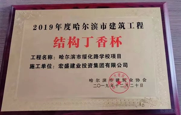 近日,喜訊傳來,由宏盛建業(yè)承建的哈爾濱市綏化路學(xué)校項目,榮獲哈爾濱市建筑業(yè)協(xié)會授予的2019年度哈爾濱市建筑工程“結(jié)構(gòu)丁香杯”工程獎,該獎項是哈爾濱市建筑業(yè)協(xié)會年度最高質(zhì)量獎項。