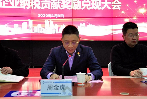 宏盛建業(yè)投資集團董事、董事長助理何丹宣讀了入園企業(yè)納稅貢獻獎勵名單和《2020年-2036年入園企業(yè)納稅貢獻獎勵方案》。中安建設、廣通建設等一批優(yōu)質(zhì)入園企業(yè)代表先后在會上發(fā)言。