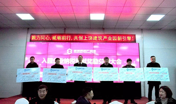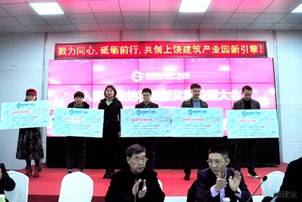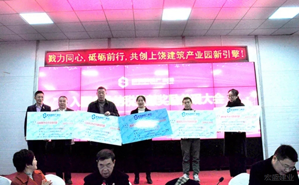 1月3日下午,上饒建筑科技產(chǎn)業(yè)園(下稱“建業(yè)硅谷”)隆重舉行入園企業(yè)納稅貢獻獎勵兌現(xiàn)大會,一次性向優(yōu)質(zhì)入園企業(yè)兌現(xiàn)獎金1300余萬元。宏盛建業(yè)投資集團、上饒市建筑科技產(chǎn)業(yè)園投資管理有限公司董事長周金虎出席會議并講話。會議由宏盛建業(yè)投資集團顧問林孫珍主持。