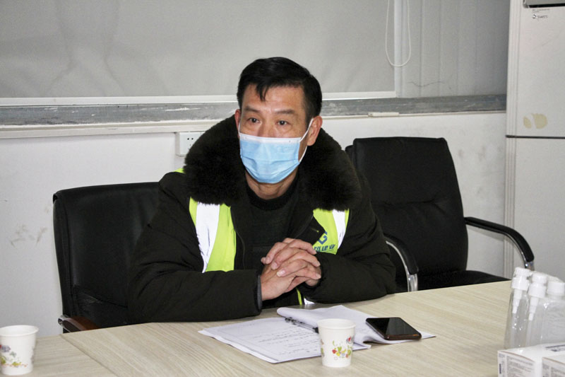 項目經(jīng)理胡亞東向成承監(jiān)事長一行匯報了現(xiàn)場情況,他表示,現(xiàn)場工人基本已經(jīng)放假,目前就剩下部分項目管理人員在開展節(jié)前收尾布置,項目部按公司制度堅持做好疫情防控工作。