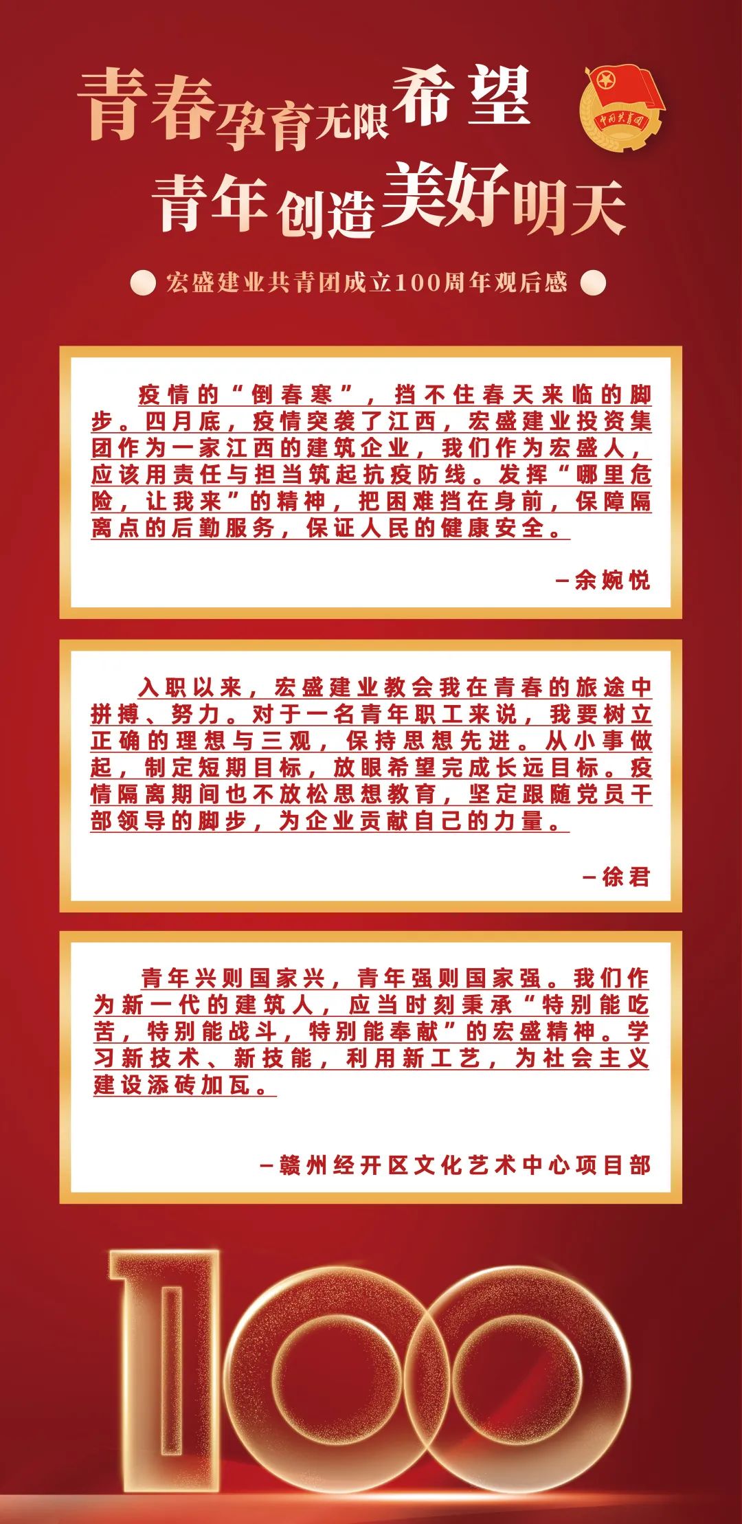 5月10日,中共中央總書記、國家主席、中央軍委主席習(xí)近平在慶祝中國共青團(tuán)成立100周年大會上發(fā)表重要講話。中共宏盛建業(yè)投資集團(tuán)有限公司黨支部組織全國各項目部及分子機構(gòu)的廣大青年集中收聽收看大會實況直播,共同聆聽習(xí)近平總書記的重要講話。廣大宏盛青年們齊聚大屏幕前,聚精會神地收看大會直播。