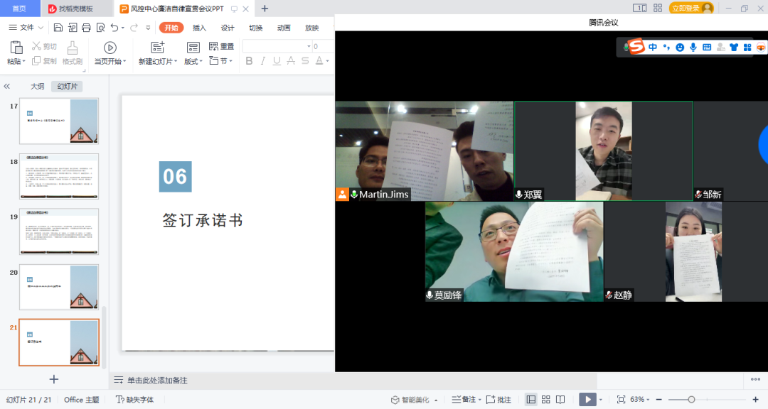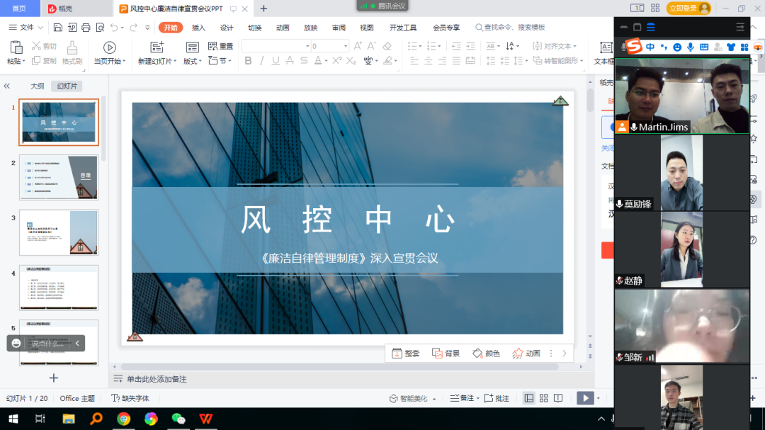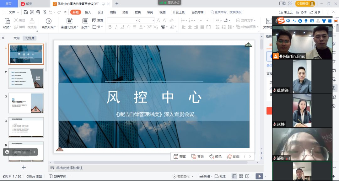 風控中心線上組織《廉潔自律管理制度》深入宣貫會議,將廉潔文化內(nèi)化于心、外化于行,進一步增強守初心、擔使命的思想自覺和行動自覺。