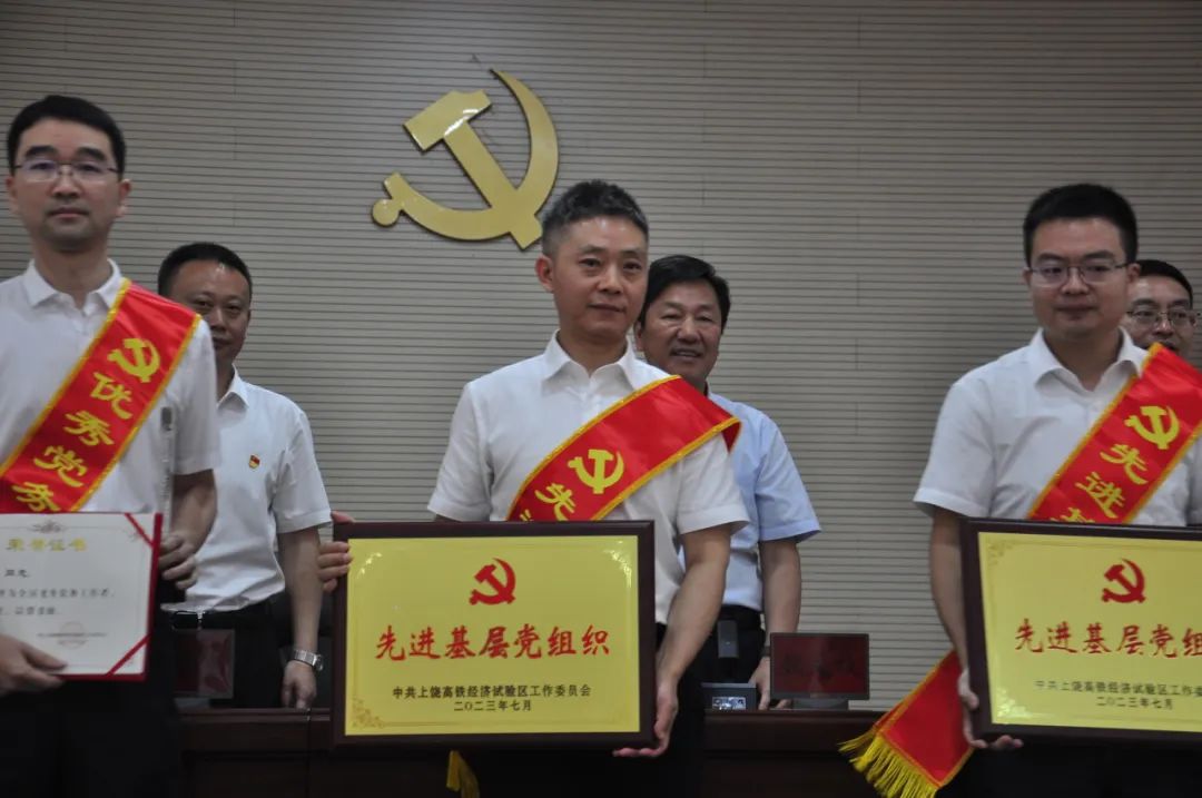 為弘揚(yáng)正氣、樹立標(biāo)桿,6月29日上午,上饒高鐵經(jīng)濟(jì)試驗(yàn)區(qū)召開全區(qū)“兩優(yōu)一先”表揚(yáng)大會,宏盛建業(yè)投資集團(tuán)有限公司黨組織榮獲“先進(jìn)基層黨組織”榮譽(yù)稱號,集團(tuán)公司副董事長、總裁周金旺同志作為先進(jìn)基層黨組織代表接受頒獎(jiǎng)。