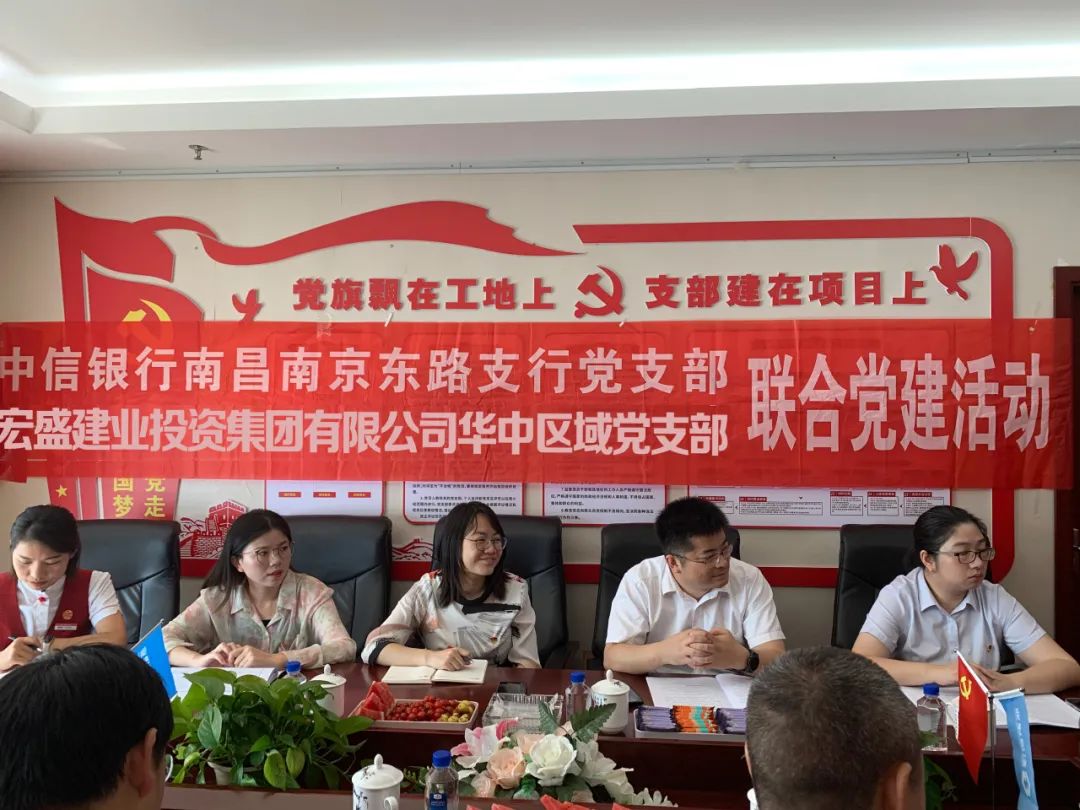 為進一步發(fā)揮黨建引領作用,構建“黨建共建、發(fā)揮合力、服務發(fā)展”的聯(lián)動機制,推進雙方黨建工作相互交流、同頻共振,7月11日上午,宏盛建業(yè)投資集團有限公司華中區(qū)域黨支部與中信銀行南昌南京東路支行黨支部開展黨支部聯(lián)合共建主題黨日活動。中信銀行南昌南京東路支行黨支部書記、行長周維睿,黨支部宣傳委員黃芳琳,集團華中區(qū)域負責人、黨支部委員陳立剛,集團華中區(qū)域黨支部書記俞磊等一行10人參加聯(lián)合共建活動。