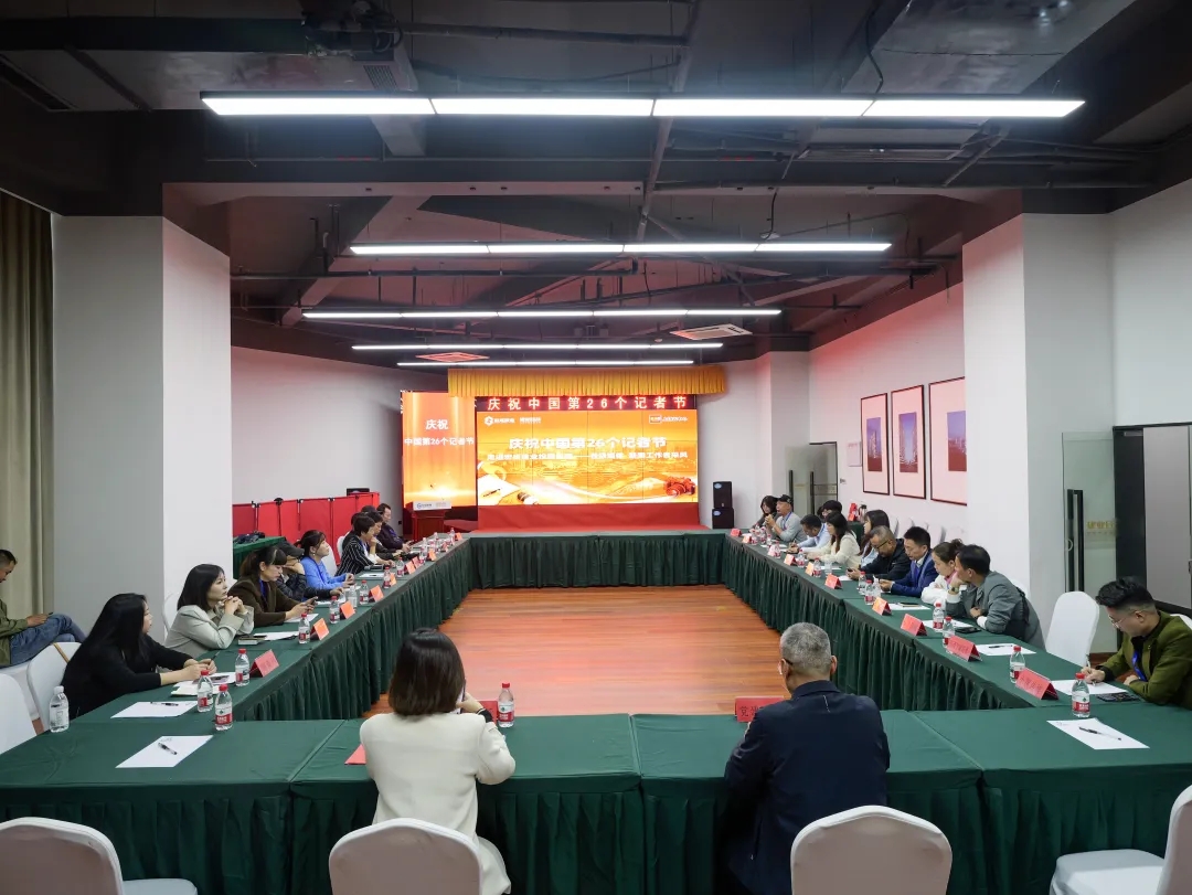 11月8日在記者節(jié)當(dāng)天,江西省20多家媒體代表應(yīng)邀前往上饒建筑科技產(chǎn)業(yè)園的宏盛建業(yè)投資集團(tuán)參觀交流。集團(tuán)黨委書記成承全程陪同,并參與座談交流。