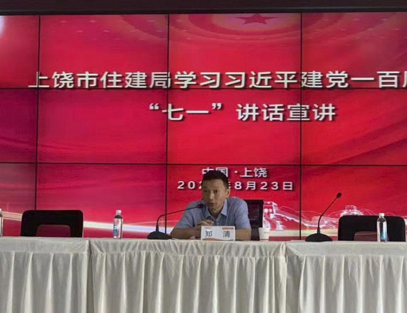 8月23日上午,秋高氣爽,上饒市住建局黨組書記、局長(zhǎng)鄭清在住建局黨政辦主任余道福陪同下,深入上饒市建筑科技產(chǎn)業(yè)園(建業(yè)硅谷),宣講習(xí)近平總書記“七一”在慶祝中國(guó)共產(chǎn)黨成立一百周年大會(huì)上的重要講話精神。鄭清同志的宣講提綱挈領(lǐng)、簡(jiǎn)明扼要、旁征博引、深入淺出,贏得了聽(tīng)眾陣陣掌聲。大家表示,聽(tīng)了鄭局長(zhǎng)的宣講,對(duì)習(xí)近平總書記的“七一”重要講話精神有了更加全面深刻的理解,對(duì)指導(dǎo)企業(yè)今后發(fā)展和提升員工素質(zhì)做好本職工作具有重要意義。
