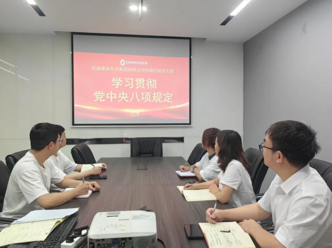 近日,宏盛建業(yè)投資集團西南區(qū)域黨支部開展“學(xué)習(xí)八項規(guī)定 深化作風(fēng)建設(shè)”專題學(xué)習(xí)會,將黨紀(jì)要求融入工程管理、市場經(jīng)營全鏈條,為打造精品工程注入“廉動力”。