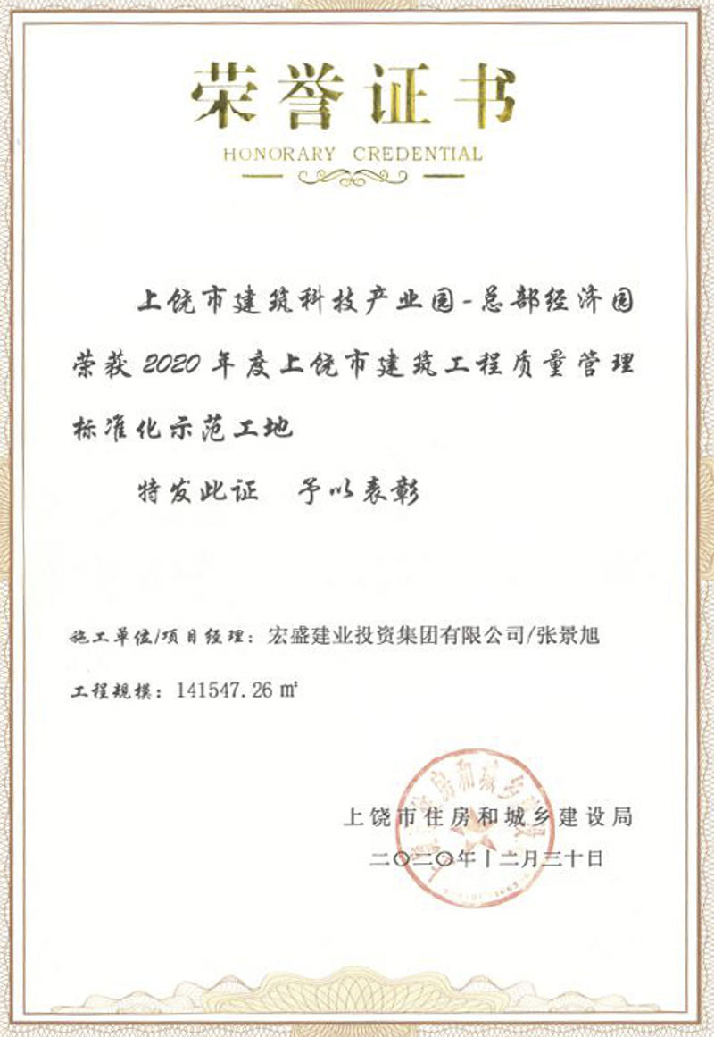 2016年12月至2017年5月,2019年3月至11月參與上饒建筑科技產(chǎn)業(yè)園施工總承包項(xiàng)目部,項(xiàng)目榮獲2020年度上饒市建筑工程質(zhì)量管理標(biāo)準(zhǔn)化示范工地