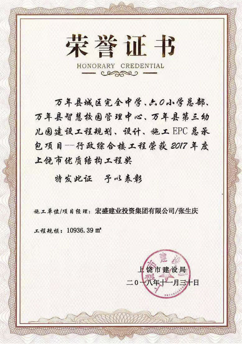 2017年5月至2018年10月參與萬年縣城區(qū)完全中學(xué)、六0小學(xué)總部建設(shè)工程項(xiàng)目,項(xiàng)目榮獲2017年度上饒市優(yōu)質(zhì)結(jié)構(gòu)工程獎
