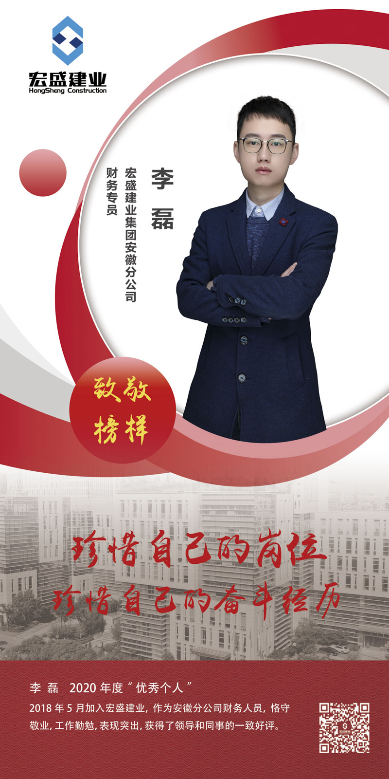 2018年,李磊加入集團(tuán),2019年入職集團(tuán)安徽分公司擔(dān)任財(cái)務(wù)專員。負(fù)責(zé)處理安徽分公司日常費(fèi)用報(bào)銷、辦公室用品采購事宜,同時也要負(fù)責(zé)跟進(jìn)、對接安徽分公司范圍內(nèi)所有項(xiàng)目從開具外經(jīng)證到撥付工程款的一系列配套工作。除此之外,他還兼任了集團(tuán)樂平市第十九小學(xué)項(xiàng)目財(cái)務(wù)工作及項(xiàng)目分公司工作。