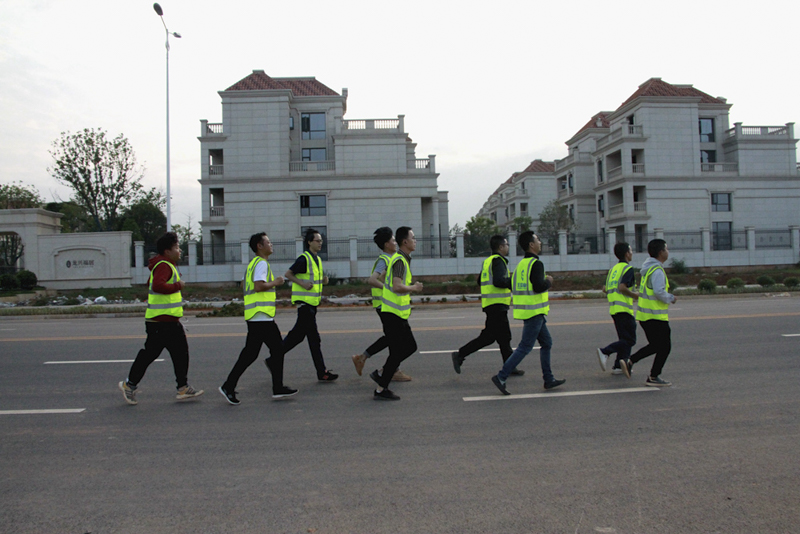 每天上午六點半,項目管理人員們準時在項目部國旗下集合,齊步正步走,步調(diào)一致迸發(fā)團隊活力,同時實行輪值隊長制度,年輕的同事們輪流當(dāng)指揮,設(shè)身處地、相互配合,大家身體力行,踐行著“特別能吃苦、特別能戰(zhàn)斗、特別能奉獻”的集團核心精神。