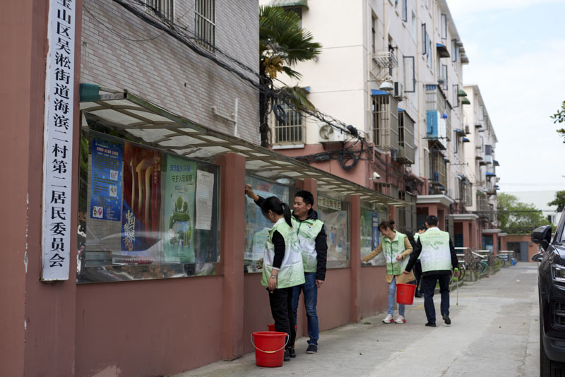 “走!帶上工具,大家一起去打掃衛(wèi)生!”另一組志愿者們,有的拿著鏟子、刷子,一張張仔細(xì)地鏟除居民樓上張貼的小廣告;有的手拿夾子沿著社區(qū)主干道撿拾垃圾;也有志愿者主動(dòng)拿起抹布,一塊一塊仔細(xì)地擦拭社區(qū)宣傳欄。在大家的共同努力之下,社區(qū)環(huán)境煥然一新,變得更加整潔、干凈,路過的居民紛紛向志愿者們豎起了大拇指,現(xiàn)場(chǎng)一派其樂融融。