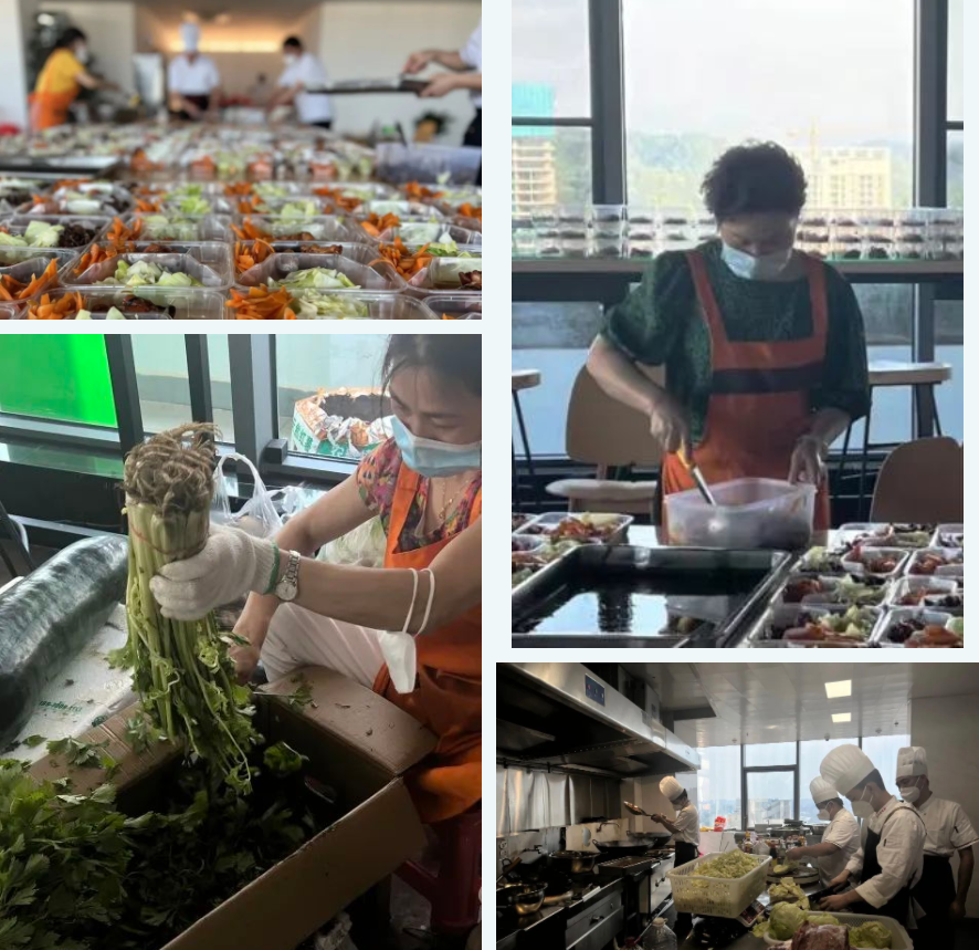 隔離人員有老人,有小孩,有外地游客,更有一些餐飲有特殊需求的人員,志愿者貼心配備了特殊餐點(diǎn);配餐結(jié)束后,志愿者還需要外出采買(mǎi)第二天的新鮮食材、樓內(nèi)隔離人員的生活必需品、對(duì)樓內(nèi)各層進(jìn)行常態(tài)化消殺和保潔,對(duì)設(shè)施設(shè)備進(jìn)行巡檢;深夜,后廚還要準(zhǔn)備第二天的部分預(yù)制餐點(diǎn)至凌晨。