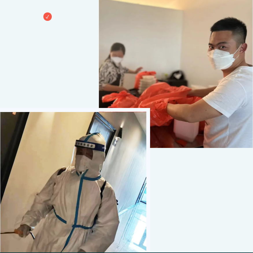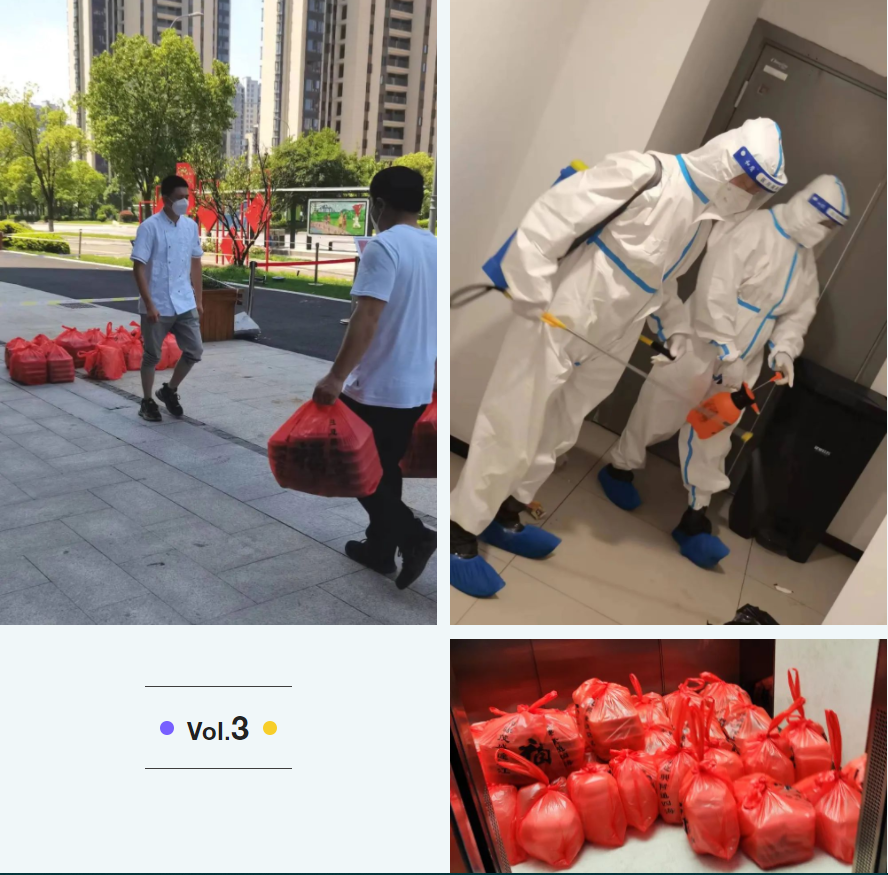 在接到通知的第一時(shí)間,宏盛建業(yè)上饒的同事們聞令而動(dòng)、迅速集結(jié)、緊急籌備,專(zhuān)門(mén)配備了后勤保障、餐飲配送、安保執(zhí)勤近20名志愿者,每天他們都需要做好防疫工作組和隔離人員一日三餐、物資采購(gòu)、外圍環(huán)境消殺等保障服務(wù)。為了更好地開(kāi)展工作,所有宏盛志愿者都主動(dòng)堅(jiān)持24小時(shí)值守,形成閉環(huán)管理,從4月29日開(kāi)始至今已有7天沒(méi)有回家,一直堅(jiān)守在一線,這當(dāng)中有部分同事的家人也在不同的縣區(qū),堅(jiān)守在不同的一線。這些勤勞又可愛(ài)的宏盛志愿者舍小家、為大家,始終用心、用情,把愛(ài)與溫暖傳遞給隔離中的每一位人員。