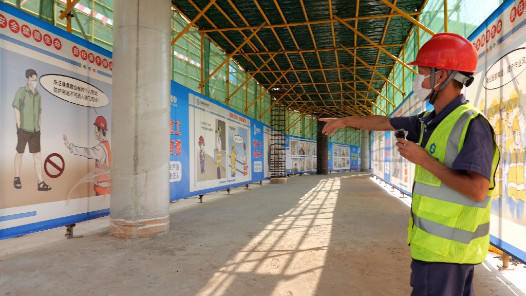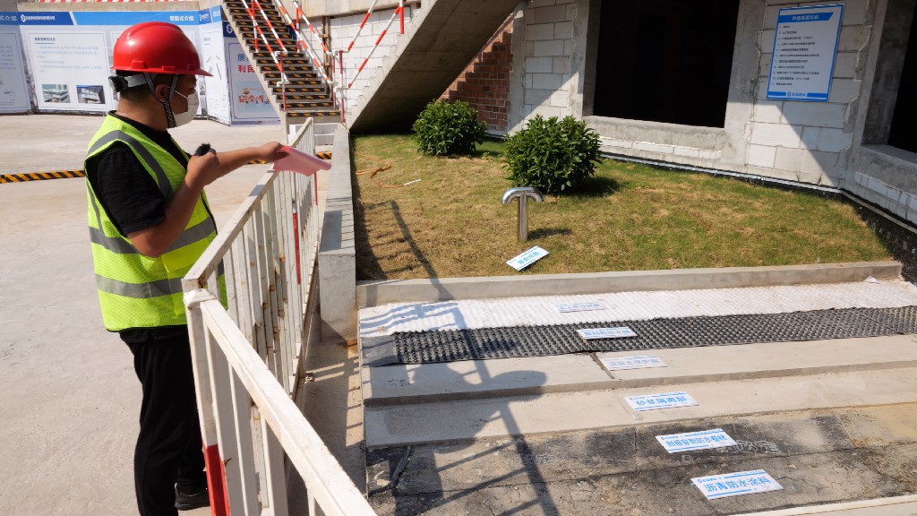 隨后,由引導(dǎo)員以在線直播的形式帶領(lǐng)大家參觀本次觀摩會現(xiàn)場。觀摩線路沿途布設(shè)黨建長廊、標(biāo)準(zhǔn)養(yǎng)護室、智慧工地展區(qū)、實體樣板區(qū)、圓柱工藝展區(qū)、施工機具及新工藝材料展示等。觀摩過程中,引導(dǎo)員為大家詳細(xì)介紹了贛州經(jīng)濟技術(shù)開發(fā)區(qū)文化藝術(shù)中心(A、C地塊)建設(shè)項目中的亮點技術(shù):弧形木模、BIM管綜調(diào)整、弧形梁GPS坐標(biāo)定點放樣、種植層面防水施工……
