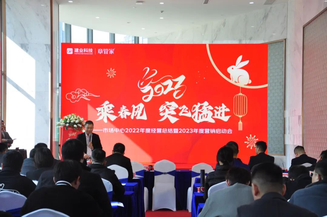 2月18日,建業(yè)科技市場中心年會正式召開。首先,部分區(qū)域合伙人、各部門回顧和總結(jié)了2022年的各項(xiàng)工作。然后由副總經(jīng)理李代偉進(jìn)行整體總結(jié),并從年度經(jīng)營目標(biāo)、市場競爭策略、品牌建設(shè)、重點(diǎn)項(xiàng)目推進(jìn)、培訓(xùn)賦能支持等方面展開了2023年市場經(jīng)營規(guī)劃。