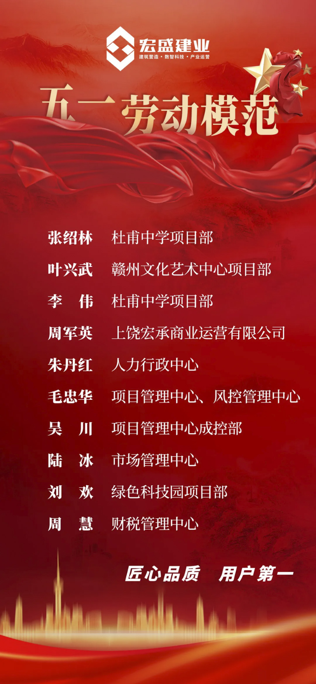 【向勞動(dòng)者致敬 為奮斗者點(diǎn)贊】宏盛建業(yè)2024年“五一勞動(dòng)模范” 評(píng)選結(jié)果揭曉~