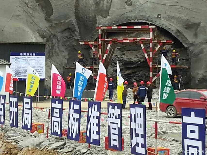 2014年11月12日,“宏盛建業(yè)投資集團(tuán)有限公司南江指揮部”及“S101線紅魚(yú)洞水庫(kù)淹沒(méi)復(fù)建工程項(xiàng)目部”正式舉行了揭牌儀式,集團(tuán)公司董事長(zhǎng)與項(xiàng)目總經(jīng)理萬(wàn)怡連親臨現(xiàn)場(chǎng)并共同揭牌、剪彩。揭牌儀式之后,孔明洞隧道也舉行了開(kāi)工典禮,正式開(kāi)啟隧道掘進(jìn),也標(biāo)志著S101線紅魚(yú)洞水庫(kù)淹沒(méi)復(fù)建工程進(jìn)入了全面施工階段。