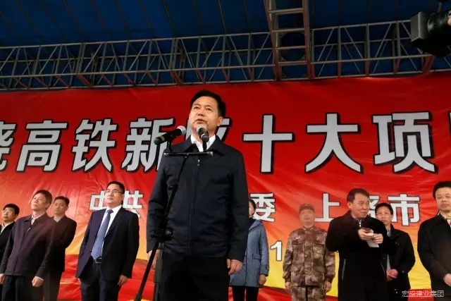 上饒高鐵經(jīng)濟試驗區(qū)黨工委書記辛魯冀陪同四套班子領(lǐng)導觀看了高鐵新區(qū)十大項目展板,并在儀式上介紹了“十大項目”基本情況。