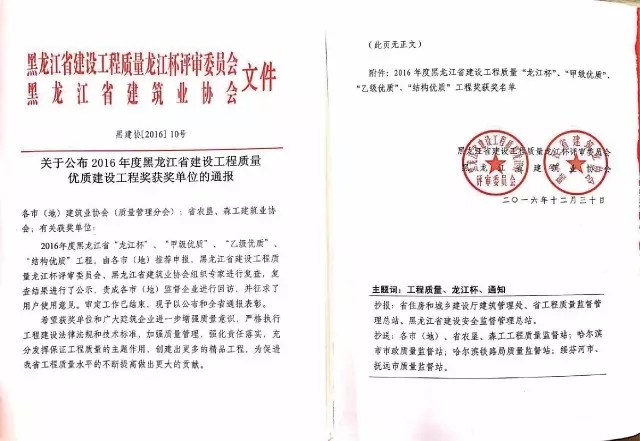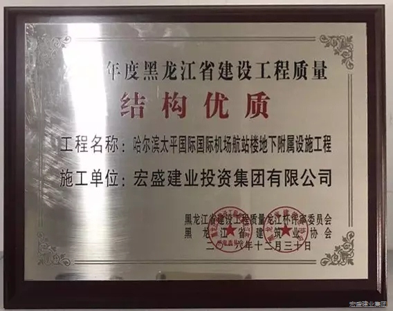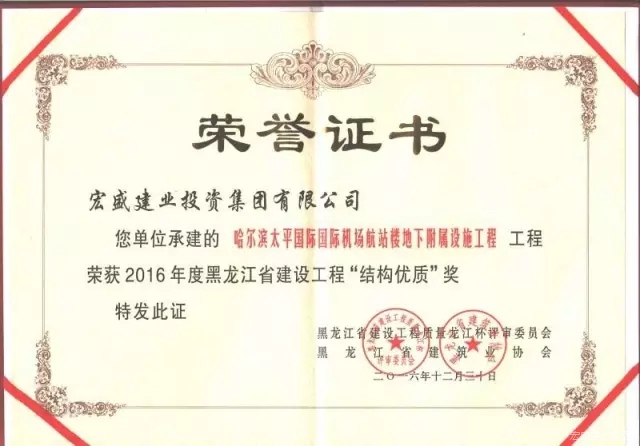 近日,由黑龍江省機(jī)場(chǎng)管理集團(tuán)有限公司投資、宏盛建業(yè)投資集團(tuán)承建的哈爾濱太平國(guó)際機(jī)場(chǎng)航站樓地下附屬設(shè)施工程項(xiàng)目在省政府2016年績(jī)效考評(píng)中獲評(píng)2016年度黑龍江省建設(shè)工程“結(jié)構(gòu)優(yōu)質(zhì)”獎(jiǎng)榮譽(yù)稱(chēng)號(hào)。