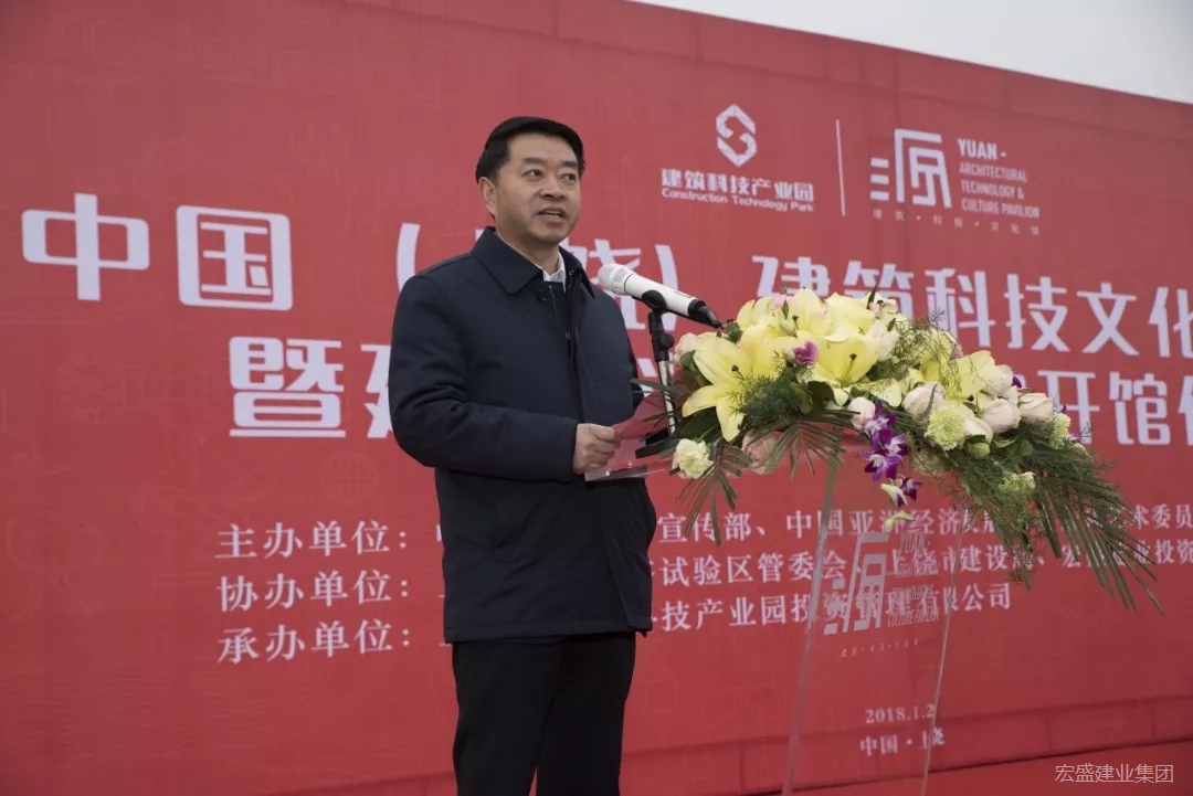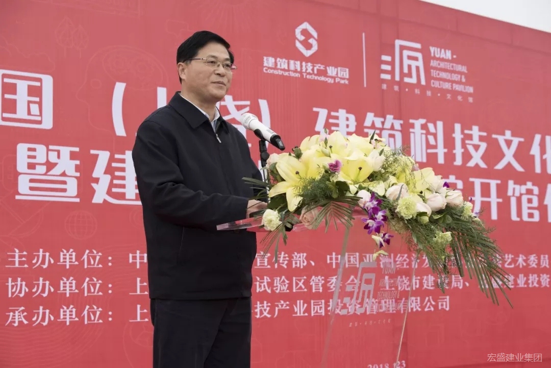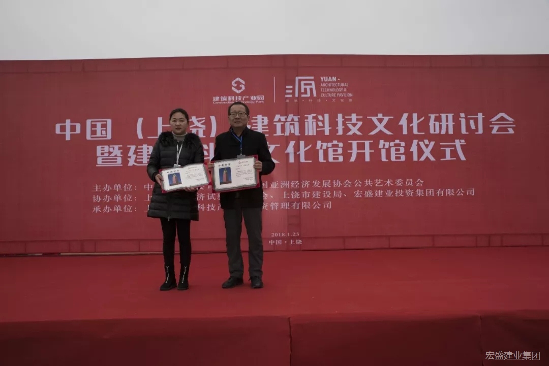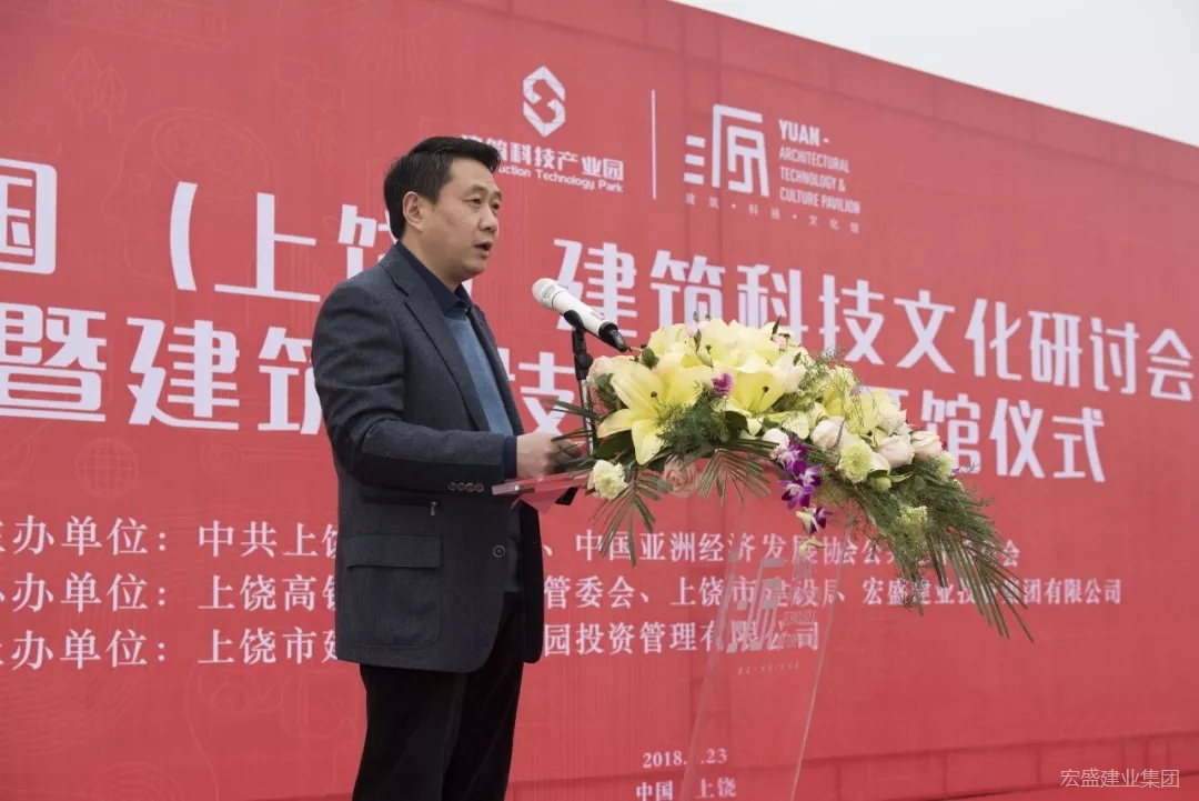 由中共上饒市委宣傳部、中國(guó)亞洲經(jīng)濟(jì)發(fā)展協(xié)會(huì)公共藝術(shù)委員會(huì)主辦,上饒高鐵經(jīng)濟(jì)試驗(yàn)區(qū)管委會(huì)、上饒市建設(shè)局、宏盛建業(yè)投資集團(tuán)有限公司協(xié)辦,上饒建筑科技產(chǎn)業(yè)園投資管理有限公司承辦的“中國(guó)(上饒)建筑科技文化研討會(huì)暨源·建筑科技文化館開館儀式”,1月23日,在江西省上饒市舉行。中共上饒市委常委、宣傳部長(zhǎng)丁曉勝、上饒市副市長(zhǎng)李高興、江西省住房和城鄉(xiāng)建設(shè)廳黨組成員、總工章雪兒、江西省商務(wù)廳副巡視員楊筱紅、中國(guó)亞洲經(jīng)濟(jì)發(fā)展協(xié)會(huì)公共藝術(shù)委員會(huì)會(huì)長(zhǎng)張寶貴、宏盛建業(yè)投資集團(tuán)董事長(zhǎng)周金虎、上饒建筑科技產(chǎn)業(yè)園執(zhí)行總裁何丹等領(lǐng)導(dǎo)出席活動(dòng)并為展館揭幕。