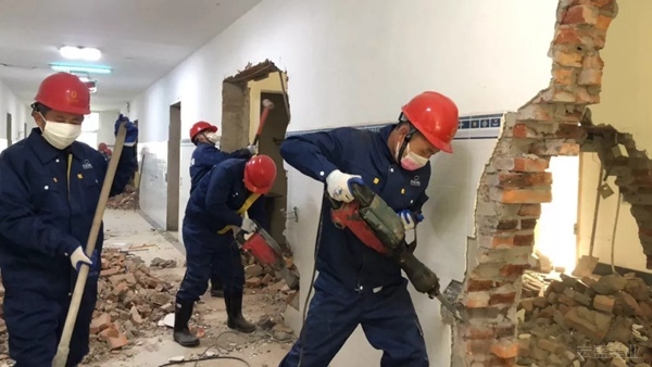 為加快上饒市第二人民醫(yī)院負壓病房建設(shè),由宏盛建業(yè)投資集團60多名現(xiàn)場管理和施工人員組成的施工隊伍,加班加點,連續(xù)奮戰(zhàn)30多小時,截止1月28日16時,已基本完成墻體鑿除任務(wù),現(xiàn)正在進行拆除物清運工作。