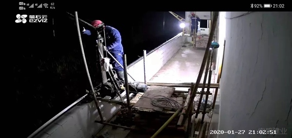 1月27日晚21時,施工隊伍依然忙碌著進行監(jiān)控安裝和現(xiàn)場清運。