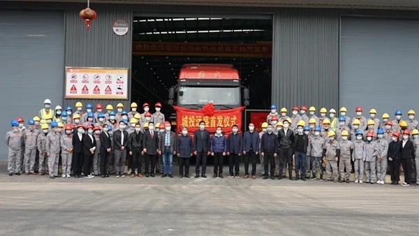 首發(fā)儀式現(xiàn)場,由詹曉華、王兆強、王漢祥一同為首發(fā)構(gòu)件揭幕,并由市城投集團黨委書記、董事長詹曉華下達發(fā)車令。
