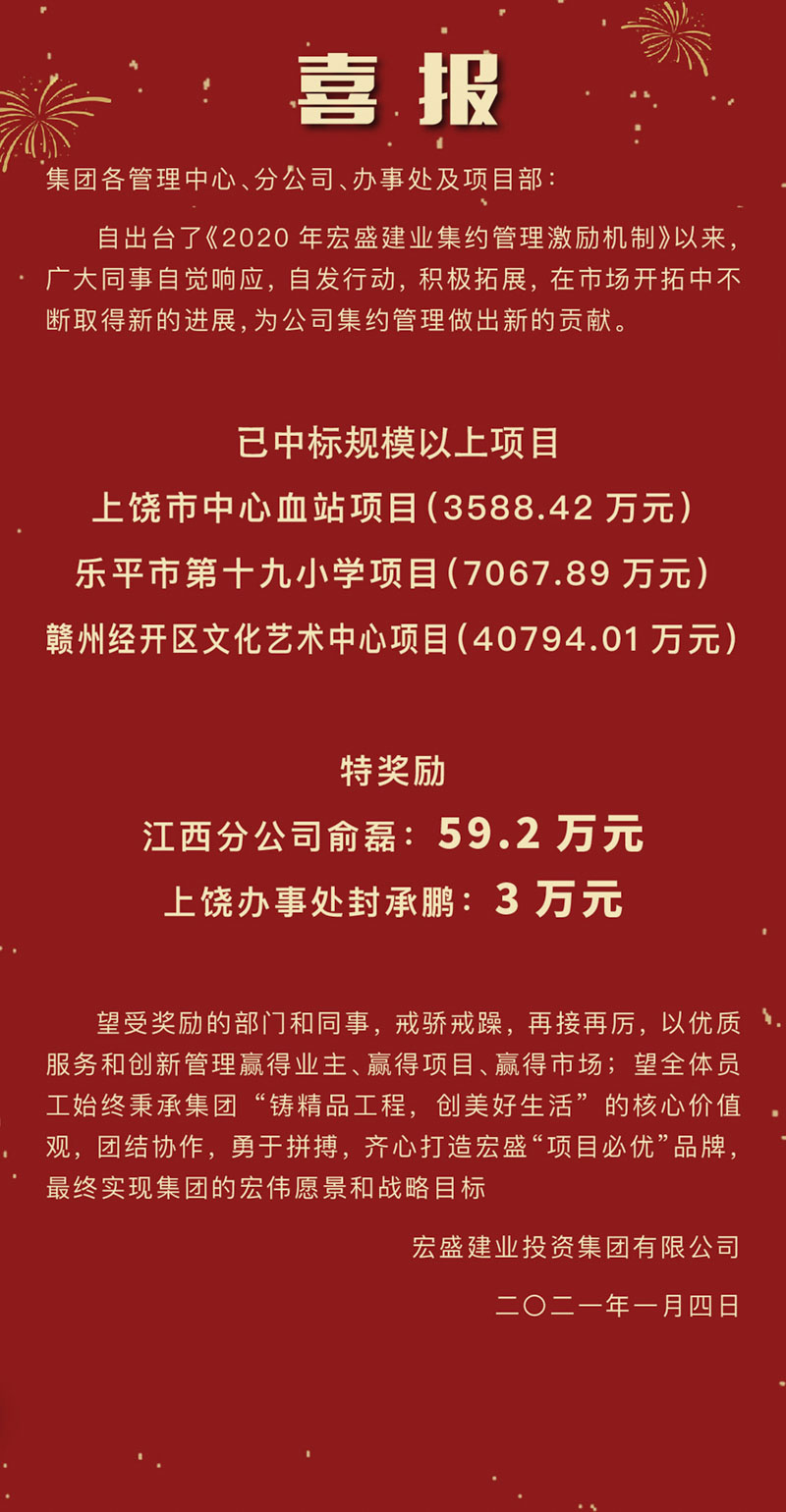 會(huì)上,集團(tuán)對市場經(jīng)營階段性成果進(jìn)行表彰,現(xiàn)場為2020年度成功開拓簽約地區(qū)級(jí)市場合作的先進(jìn)集體和個(gè)人,以及成功中標(biāo)規(guī)模以上項(xiàng)目的分公司頒發(fā)現(xiàn)金獎(jiǎng)勵(lì)。