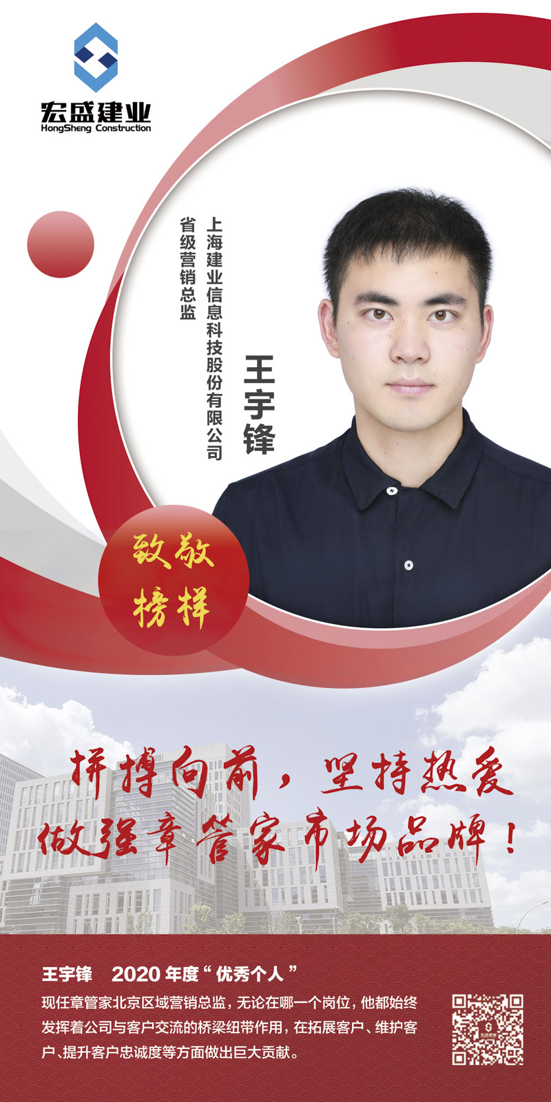 現(xiàn)任章管家北京區(qū)域營銷總監(jiān),他有著極強的公關能力和系統(tǒng)的營銷策略,在日常服務工作中始終堅持“誠”與“勤”?!罢\”即真誠、誠信,“勤”即是勤談,勤跑。自加入建業(yè)科技后,他先后擔任過渠道銷售助理、大客戶經理等職位,始終發(fā)揮著公司與客戶交流的橋梁紐帶作用,在拓展客戶、維護客戶、提升客戶忠誠度等方面做出巨大貢獻。