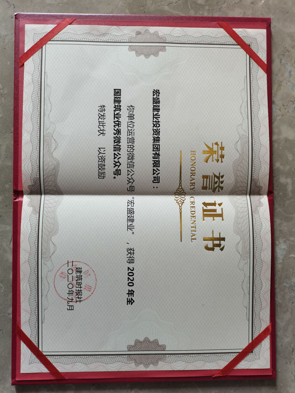 宏盛建業(yè)集團(tuán)榮獲“2020年全國(guó)建筑業(yè)優(yōu)秀微信公眾號(hào)”稱(chēng)號(hào)