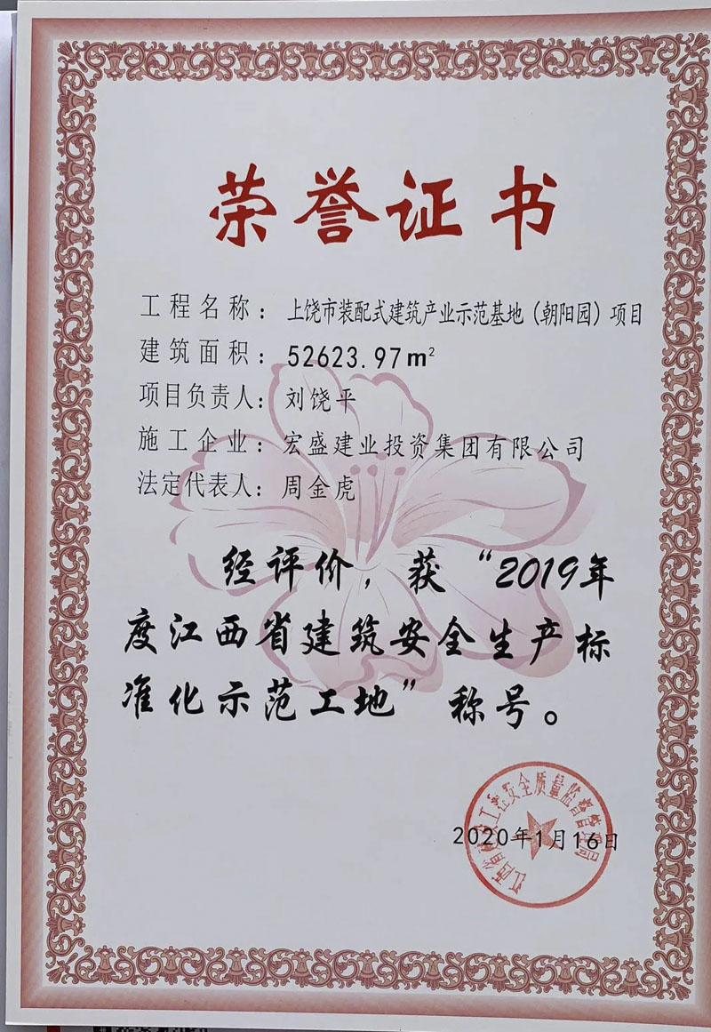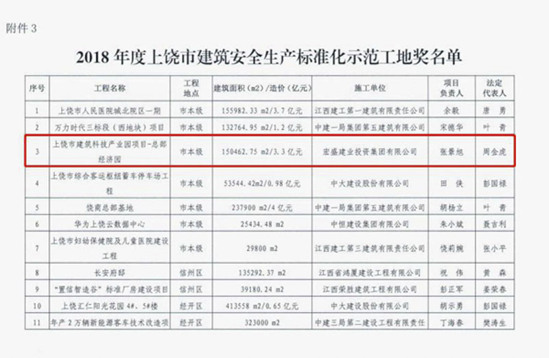 江西省住房與城鄉(xiāng)建設(shè)廳網(wǎng)站發(fā)文公示,由宏盛建業(yè)承建上饒市建筑科技產(chǎn)業(yè)園-總部經(jīng)濟園、上饒裝配式建筑產(chǎn)業(yè)示范基地(朝陽園)項目,獲評2019年度江西省建筑結(jié)構(gòu)示范工程和安全生產(chǎn)標(biāo)準(zhǔn)化示范工地。