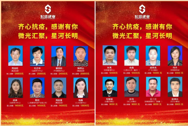 宏盛建業(yè)接令迅即投身上饒市抗擊疫情防控工作,緊急組織60多名優(yōu)秀黨員和骨干組成先鋒突擊隊日夜搶戰(zhàn),二支先鋒突擊隊2天2夜超前完成上饒市第二人民醫(yī)院抗擊疫情防控負壓病房改建。同時,宏盛黨員積極為防疫出力的同時,主動奉獻愛心,集聚善款394200元。
