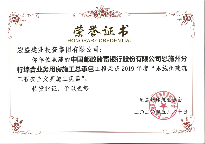 從湖北省建設(shè)工程質(zhì)量安全協(xié)會文件(鄂建質(zhì)安協(xié)〔2020〕7號)文件獲悉,宏盛建業(yè)承建的中國郵政儲蓄銀行股份有限公司恩施州分行綜合業(yè)務(wù)用房施工總承包項目,獲評2019-2020年度第二批湖北省建筑工程安全文明施工現(xiàn)場。該項目累獲市優(yōu)省優(yōu),展現(xiàn)項目擔(dān)當(dāng)。