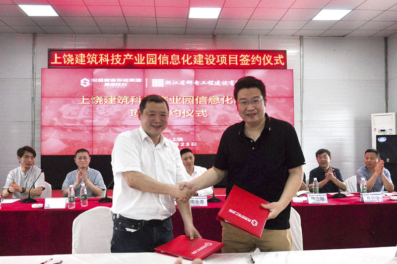 上饒建筑科技產(chǎn)業(yè)園投資管理有限公司與浙江省郵電工程建設(shè)有限公司在上饒舉行“建業(yè)硅谷”智慧園區(qū)信息化系統(tǒng)建設(shè)集成項目合作簽約儀式