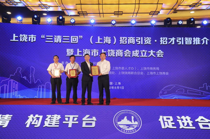 “上饒市‘三請三回’(上海)招商引資·招才引智推介會暨上海市上饒商會成立大會”在上海華亭賓館隆重舉行。宏盛建業(yè)投資集團董事長周金虎當(dāng)選上海市上饒商會會長,并在推介會上與上饒市政府簽訂擬投資40億元落戶上饒經(jīng)開區(qū)的數(shù)智電子科技園項目。