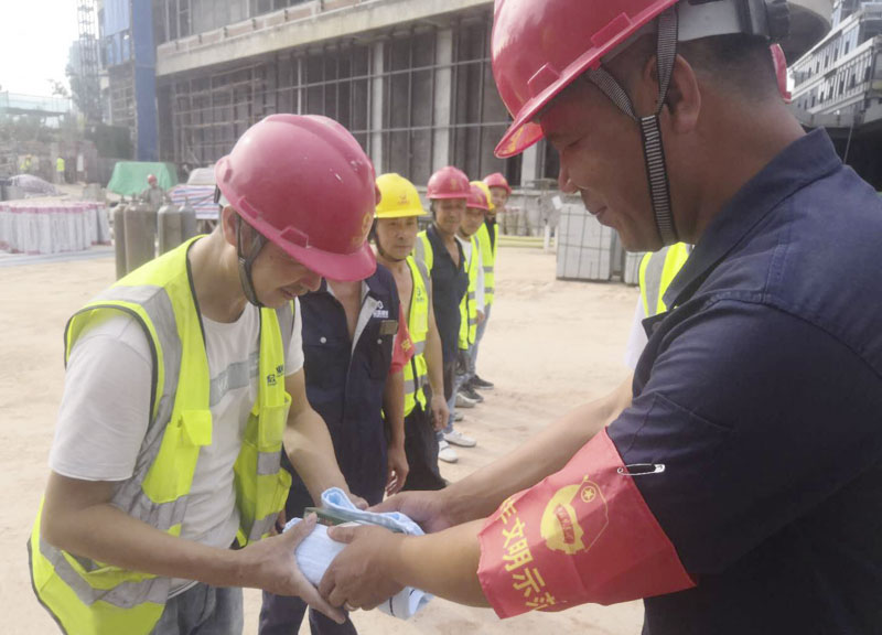 金慧一行一邊發(fā)放慰問品,一邊詢問施工人員工作生活中遇到的困難,提醒大家暑期施工要注意防暑和施工安全,鼓勵大家要精心組織,科學(xué)管理,攻堅克難,奮力拼搏,堅持安全與質(zhì)量并抓,持續(xù)推進項目建設(shè)進度。
