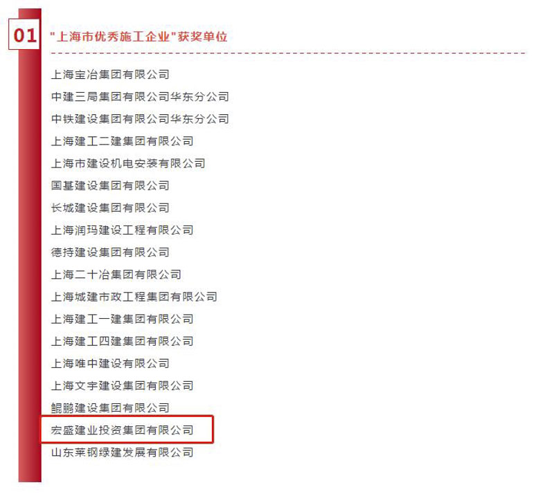 【喜訊】宏盛建業(yè)獲評(píng)2020-2021年度“上海地區(qū)優(yōu)秀施工企業(yè)”